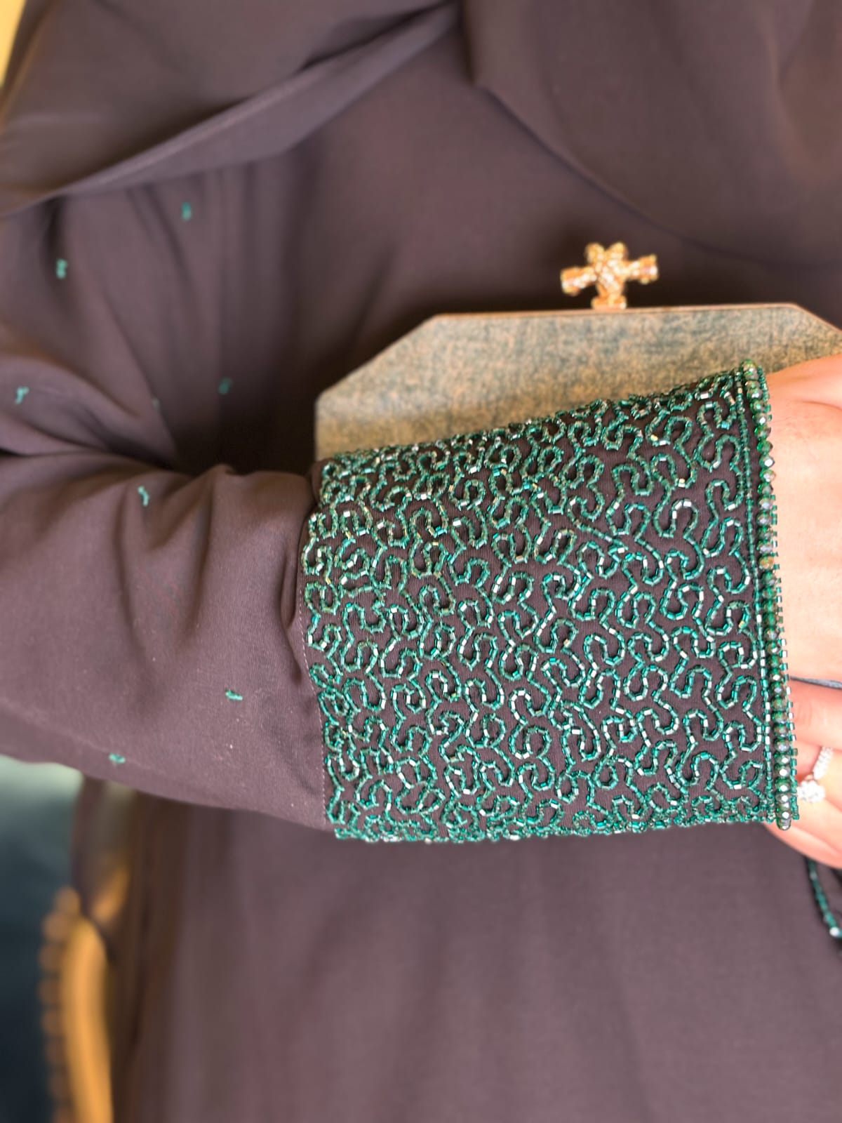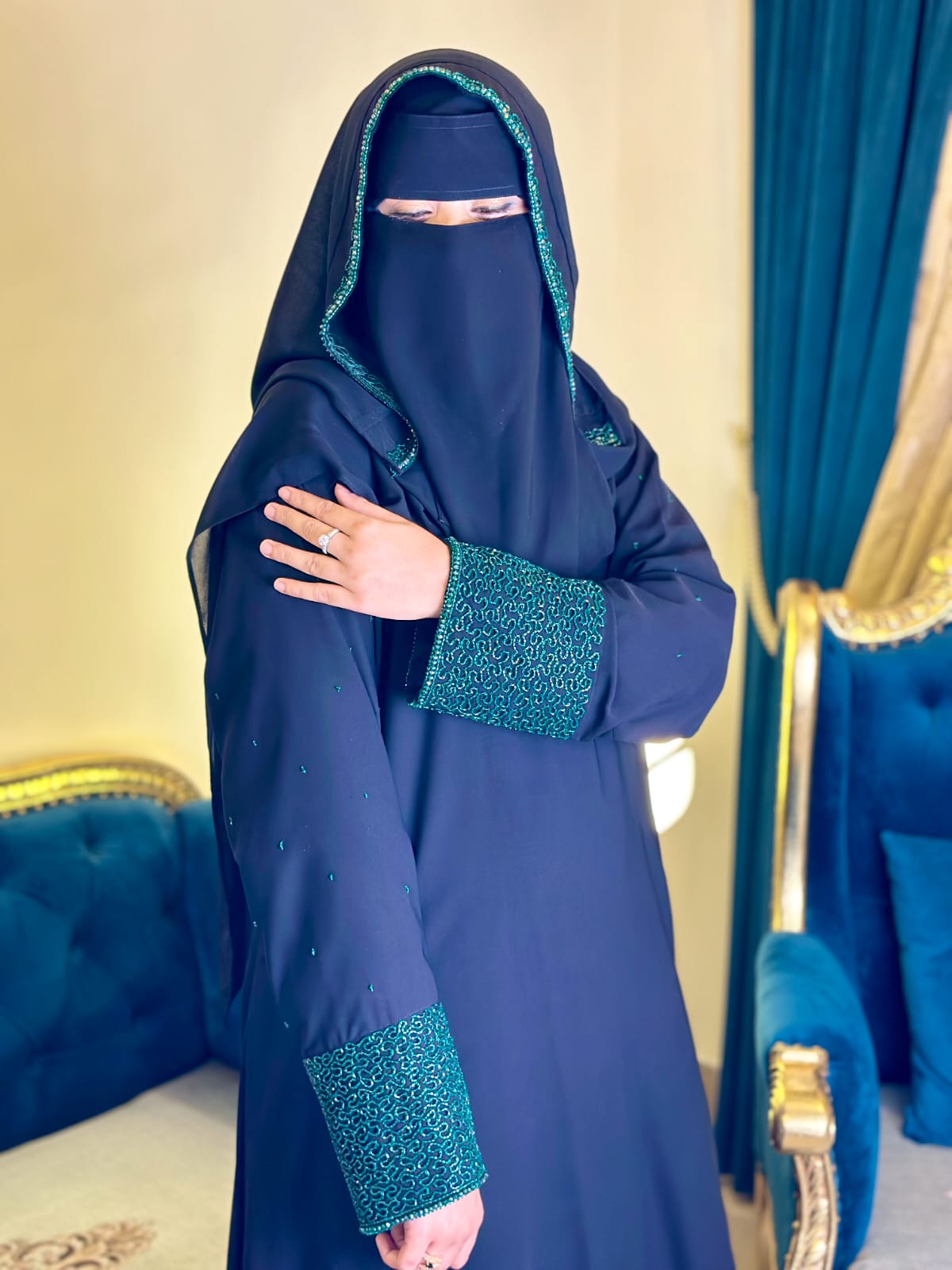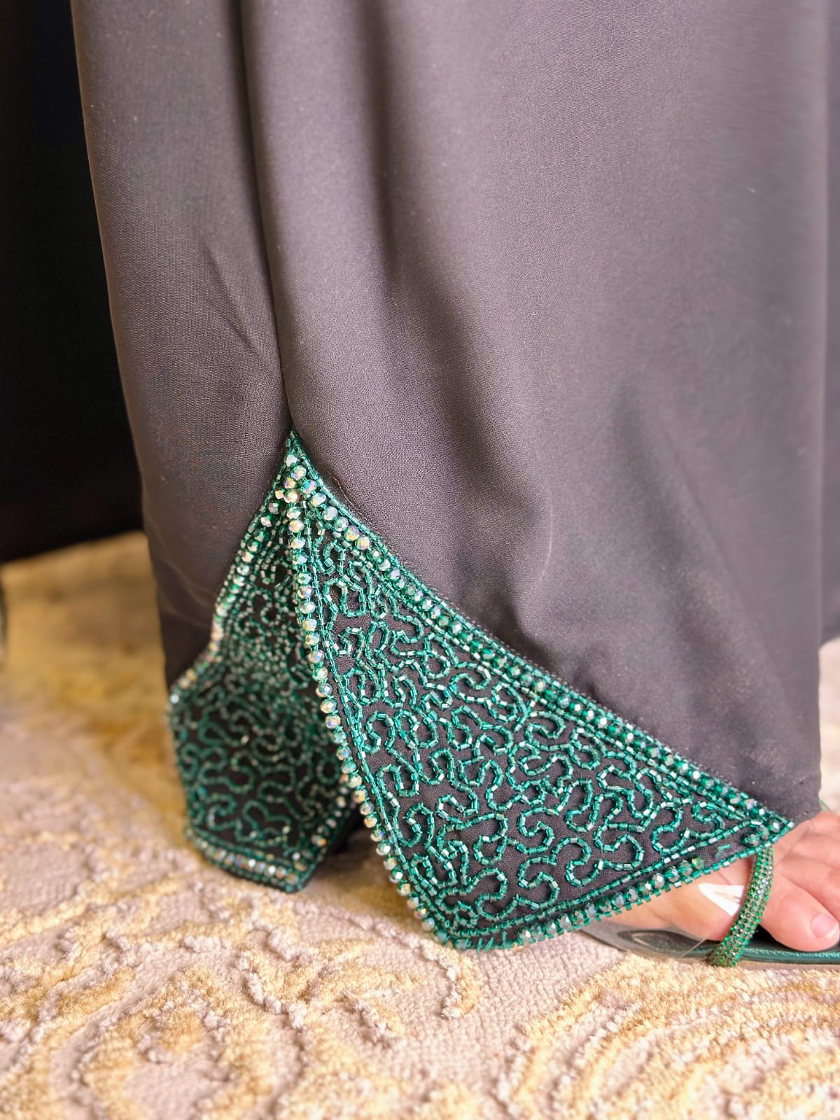 A perfect blend of luxury, tradition, and artistic craftsmanship, the Zumurrud Al-Layl abaya is designed for brides who wish to make a statement with their bridal attire.
